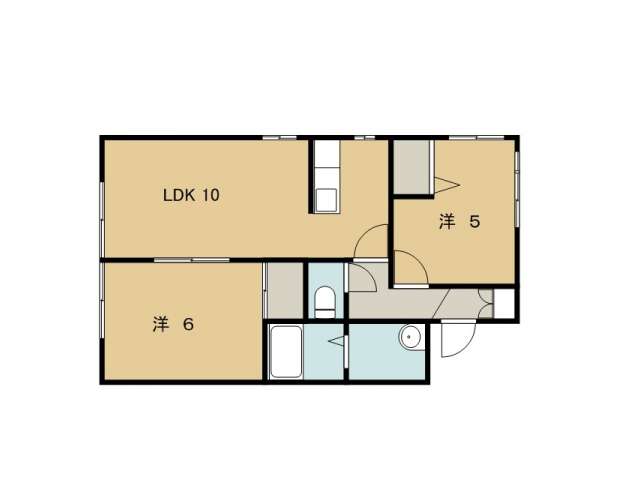 | 詳細間取 | 2LDK (洋5帖×1、洋6帖×1、LDK10帖) | ||